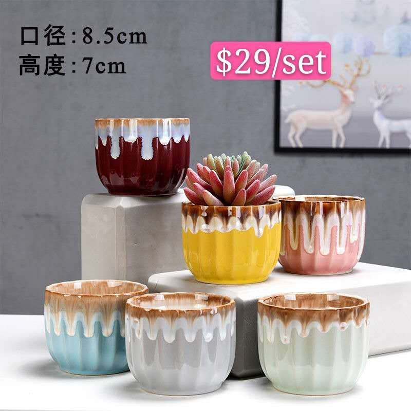 Set of 6 Gloss Succulent pots Selection small 7.5x8.5cm